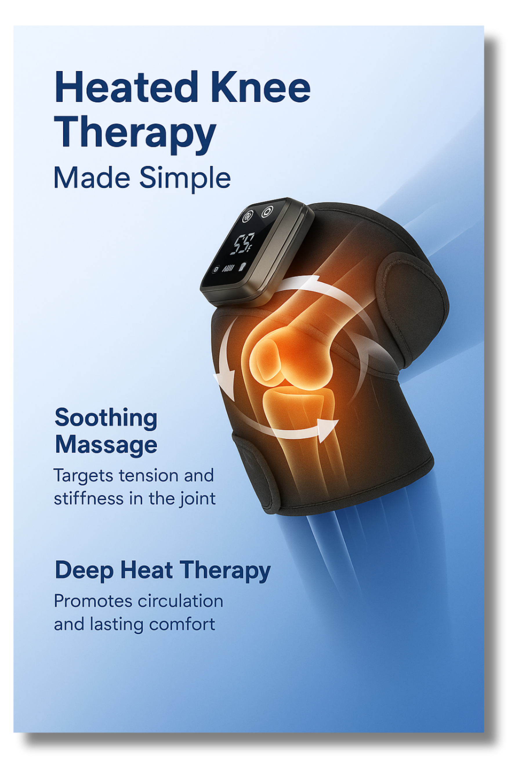 • 🧘 Melt Away Knee Pain — gentle heat + massage calm aching joints so you can finally relax.